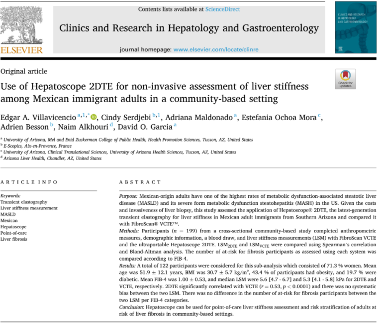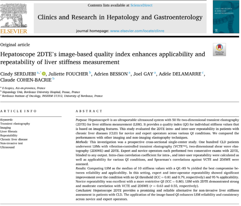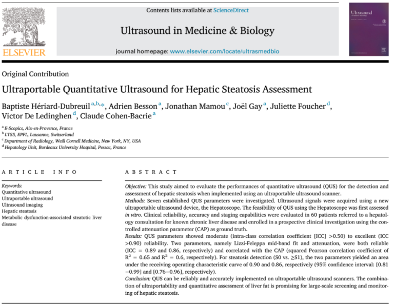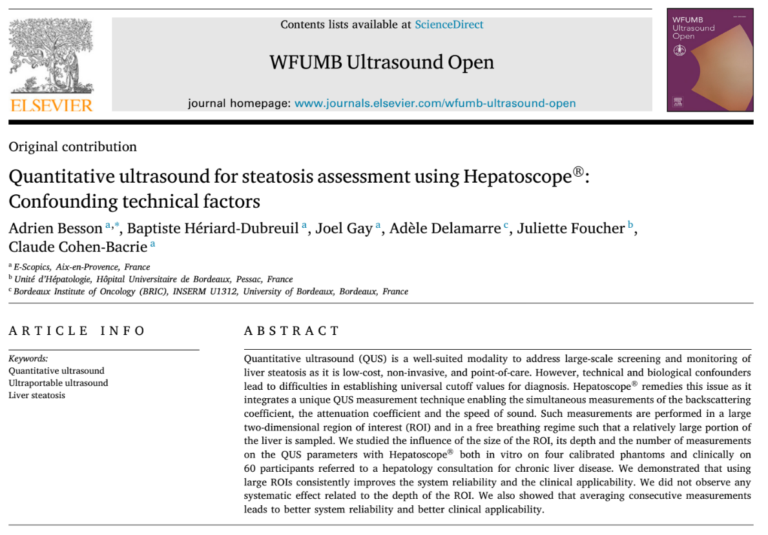 Cindy Serdjebi, Juliette Foucher, Adrien Besson, Joel Gay, Adèle Delamarre, Claude Cohen-Bacrie Clinics and Research in Hepatology and GastroEnterology, January 2025 Abstract Purpose Hepatoscope® is an ultraportable ultrasound system with [...]